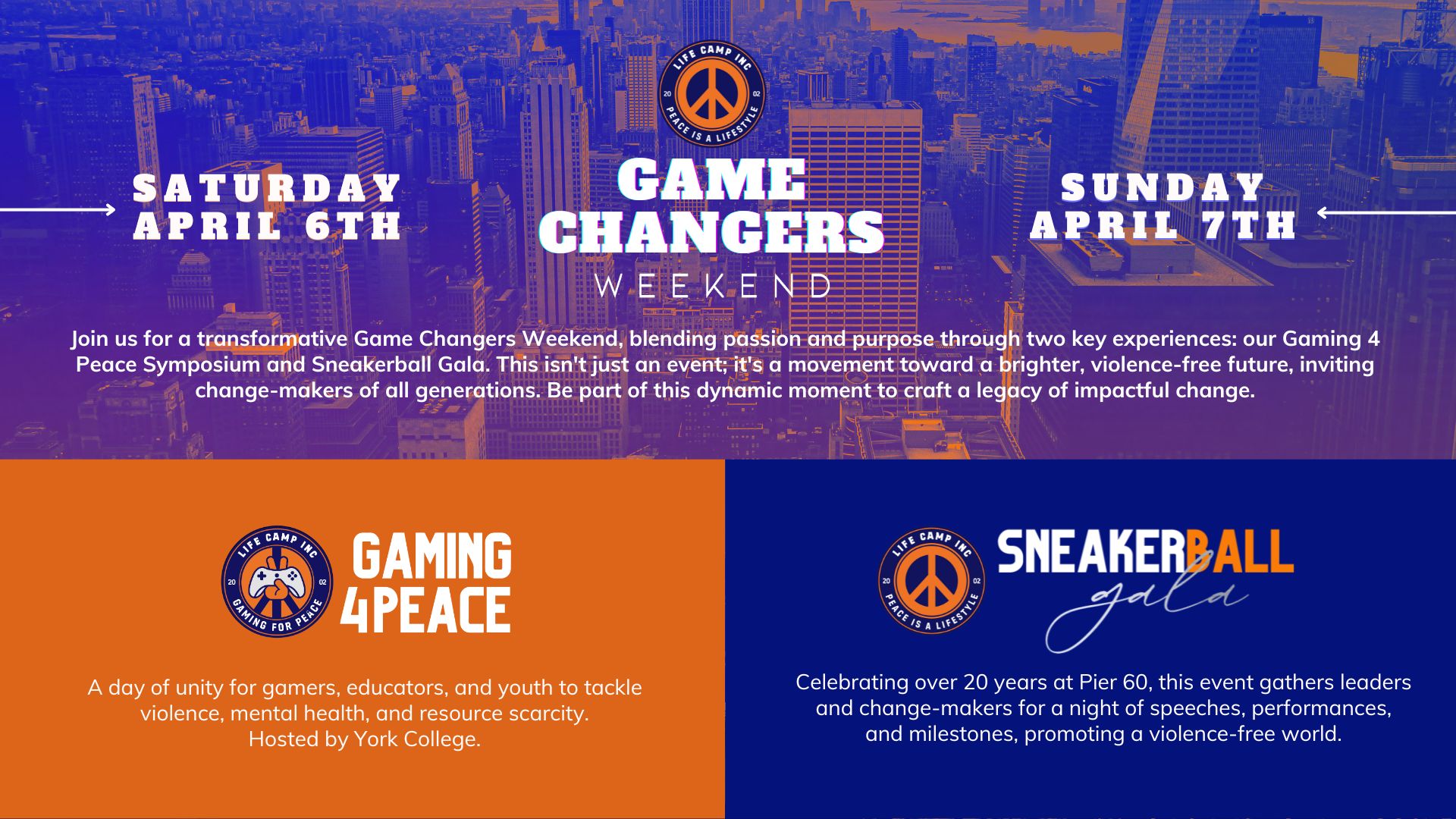 LIFE Camp, Inc., a beacon in America’s fight against violence, has revolutionized how communities confront and heal from trauma since its inception in 2002. LIFE Camp, Inc. We invite you to join us to celebrate 20+ years of commitment to community, during our Game Changers Weekend, Sneakerball Gala at Pier 60 on Sunday April 7, 2024 at 5:00pm.